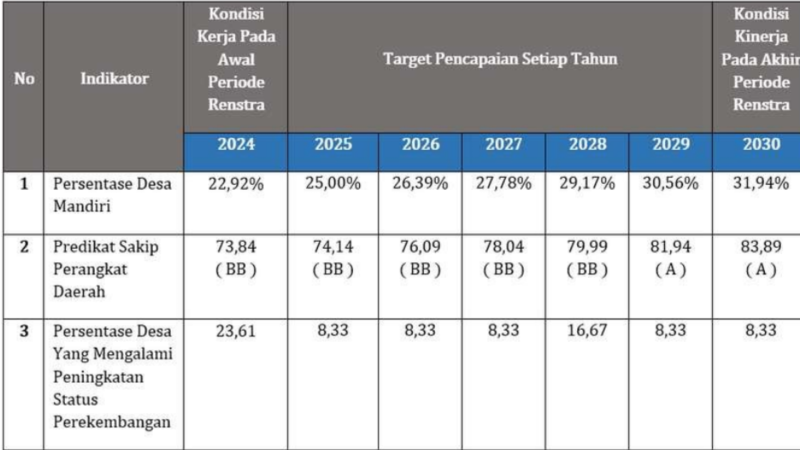 Indikator Kinerja Utama Dinas Pemberdayaan Masyarakat dan Desa Kabupaten Polewali Mandar Tahun 2025-2029.